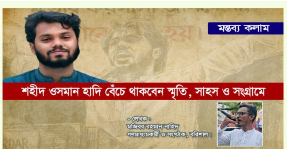 শরিফ ওসমান বিন হাদি আজ নেই, কিন্তু তাঁর চিন্তা, সাহস ও আদর্শ মুছে যায়নি। ওসমান হাদি ছিলেন-আছেন এবং থাকবেন প্রতিটি মানুষের হৃদয়ে।
