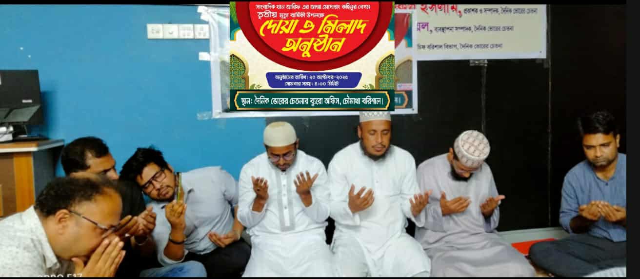 সাংবাদিক খান আরিফের প্রয়াত মা মোসাম্মৎ কহিনুর বেগমের তৃতীয় মৃত্যুবার্ষিকী উপলক্ষে দোয়া ও মিলাদ মাহফিল অনুষ্ঠিত হয়েছে। সোমবার (২০ অক্টোবর ২০২৫) বিকেল ৪টা ৩০ মিনিটে, দৈনিক ভোরের চেতনার বুড়ো অফিসে এই দোয়া মাহফিলের আয়োজন করা হয়।